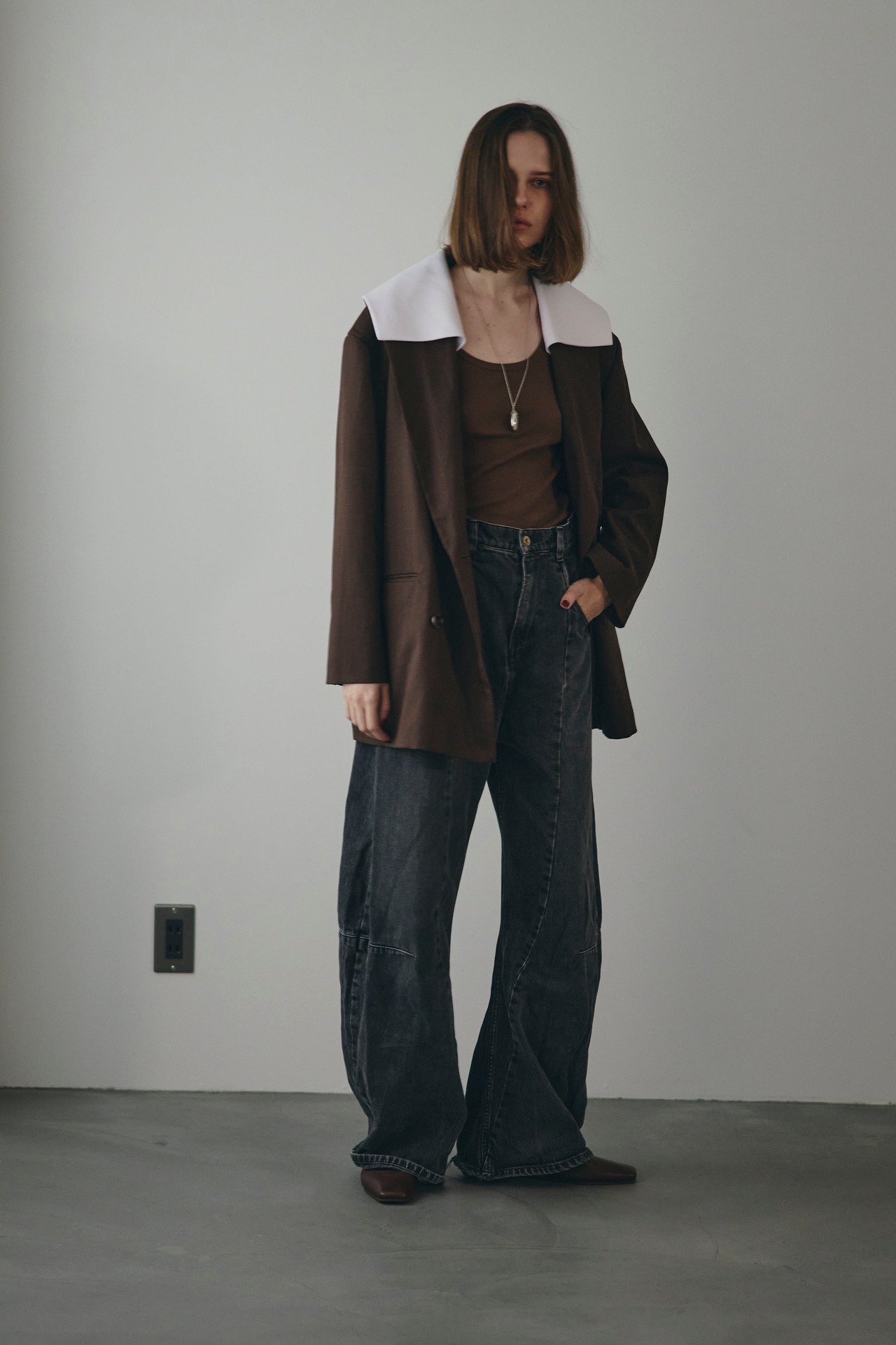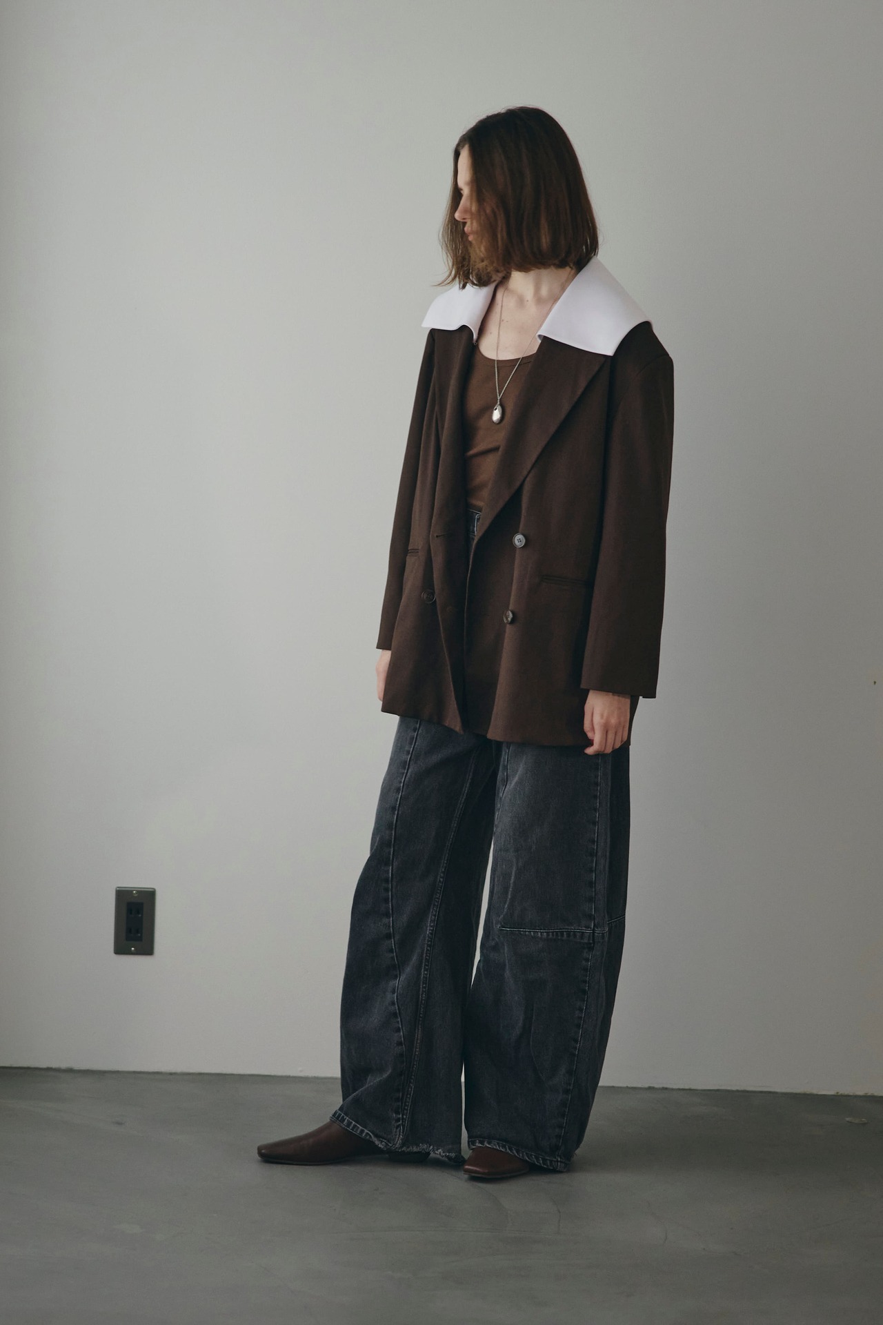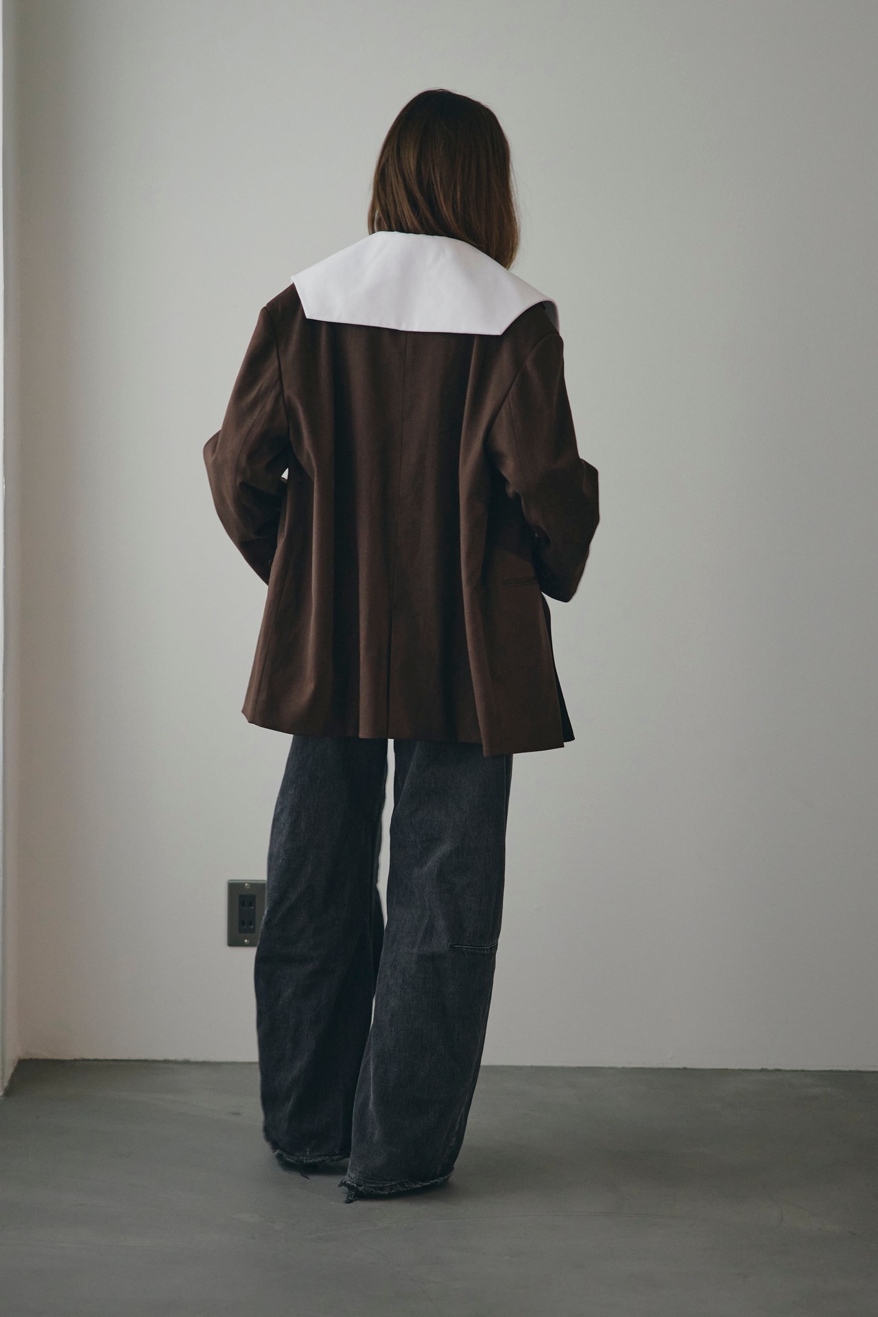 白襟を外すと、マニッシュなテーラードジャケットとしても着用でき、
