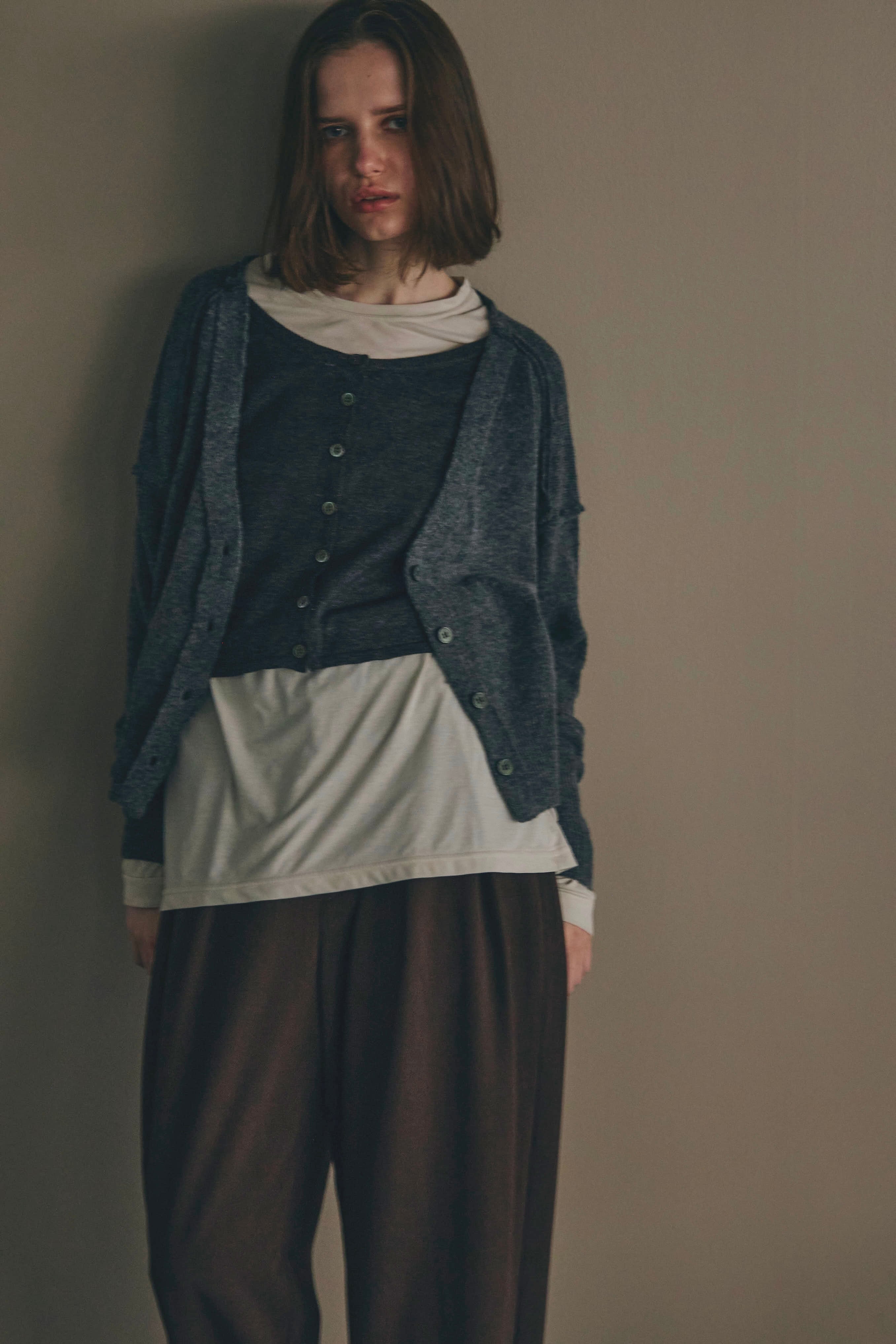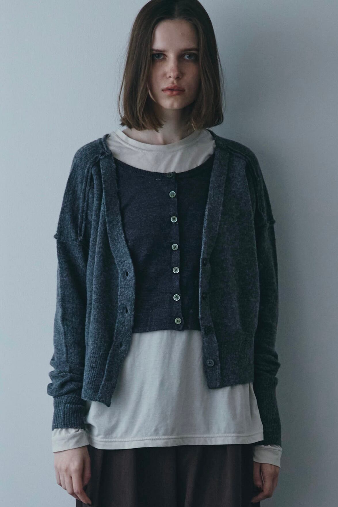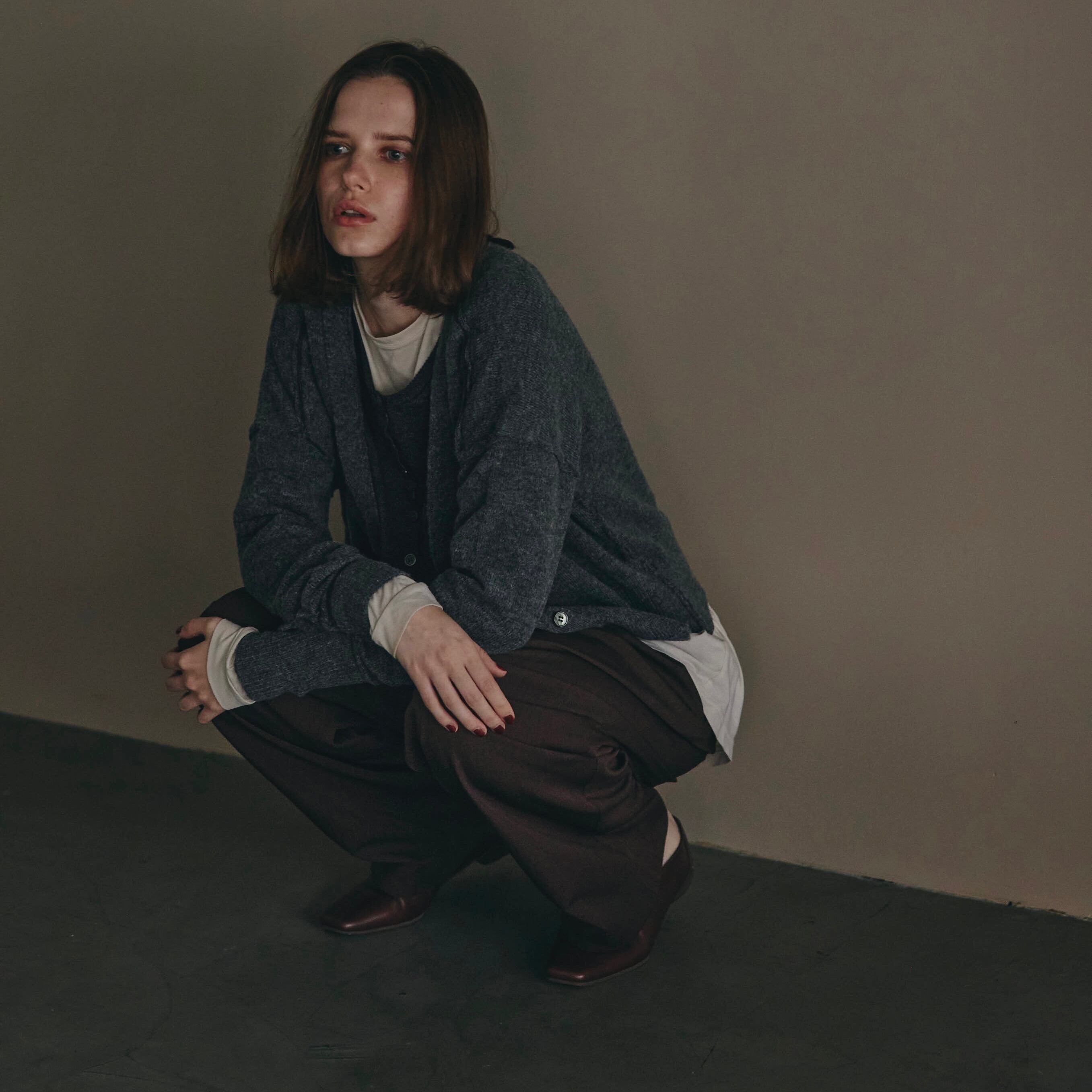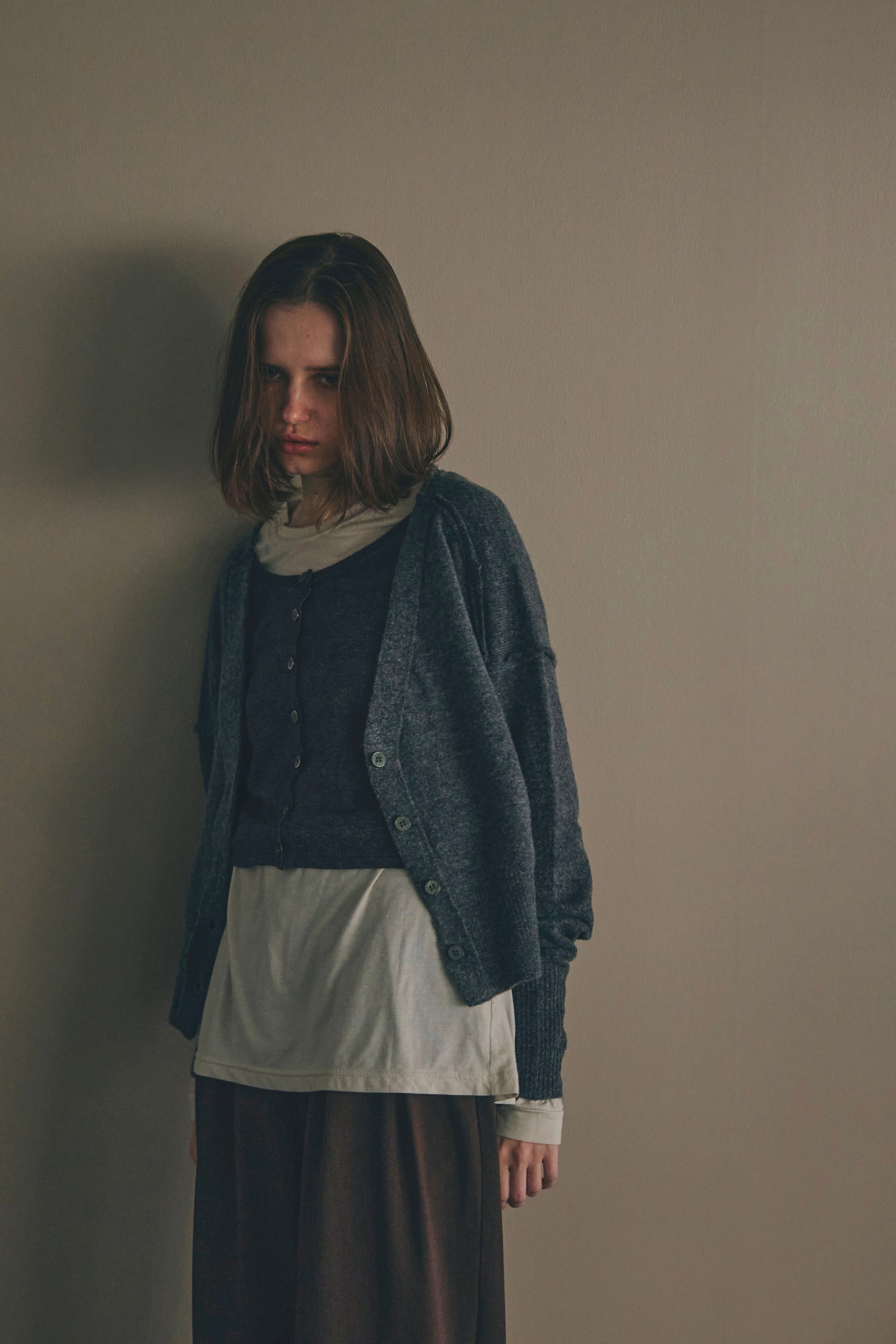 アウターを脱いだ瞬間、「あ、いい色合わせだな」って思われるショートレイヤードニットです。