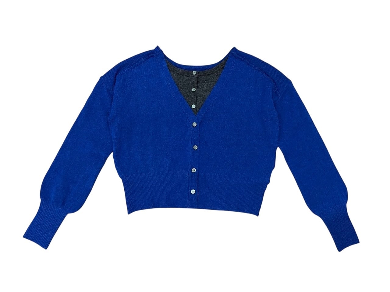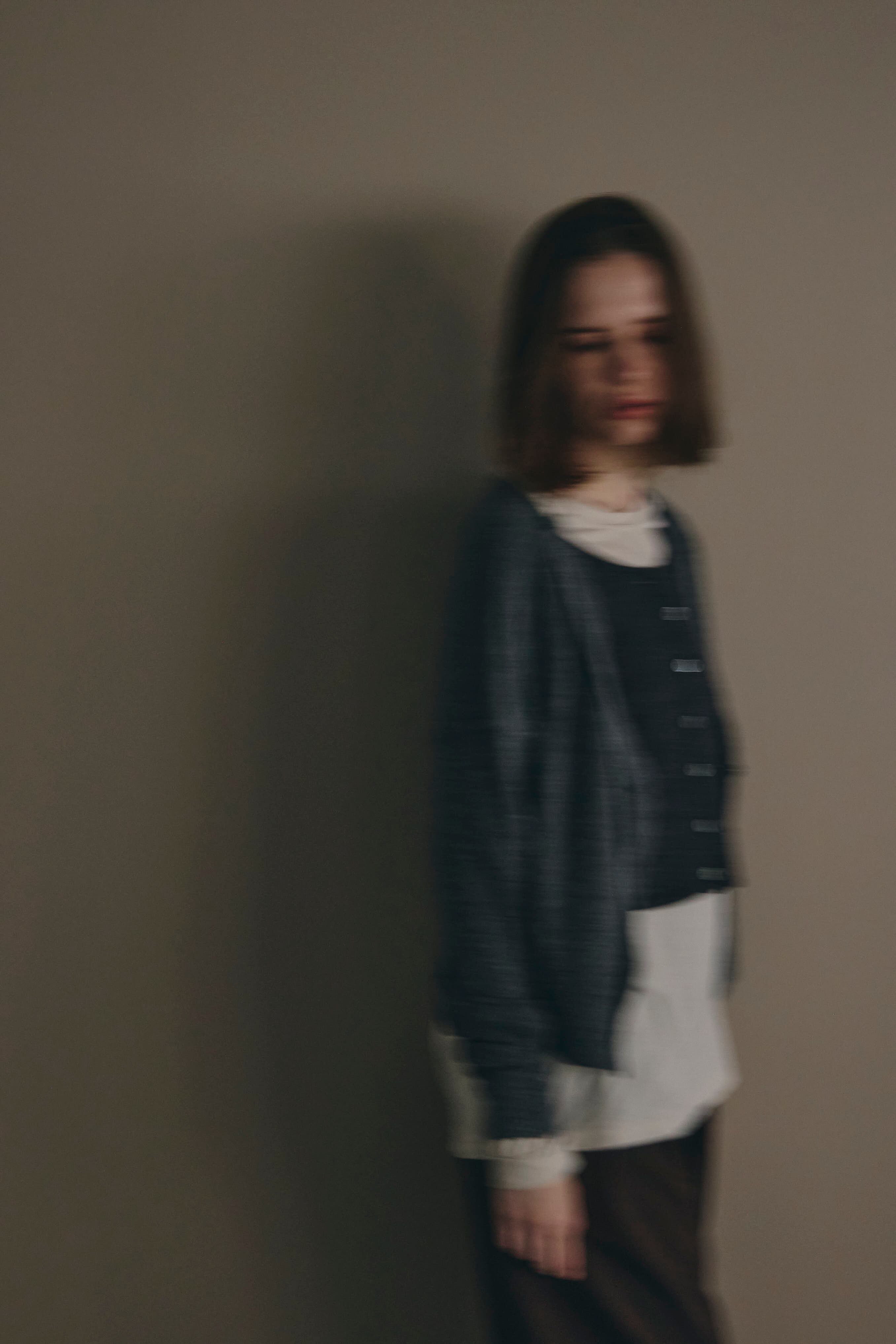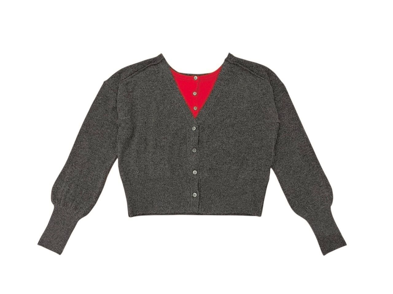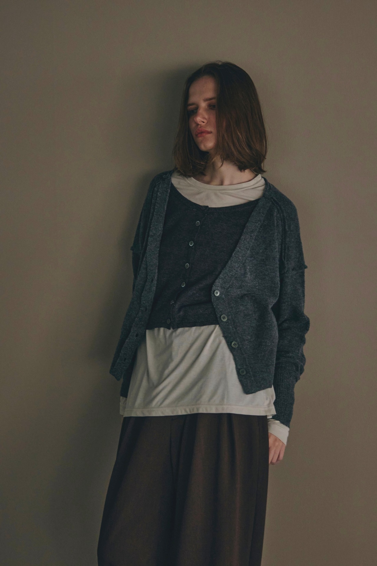 アウターを脱いだ瞬間、「あ、いい色合わせだな」って思われるショートレイヤードニットです。