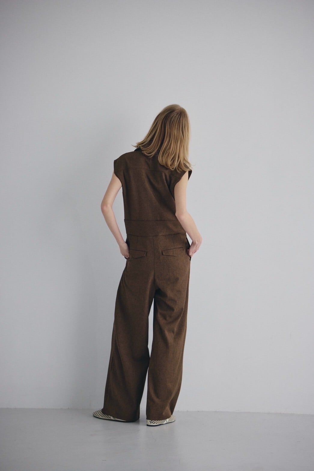 ウエスト位置を自然にマークしつつ、ボトムはストンと落ちるワイドライン。