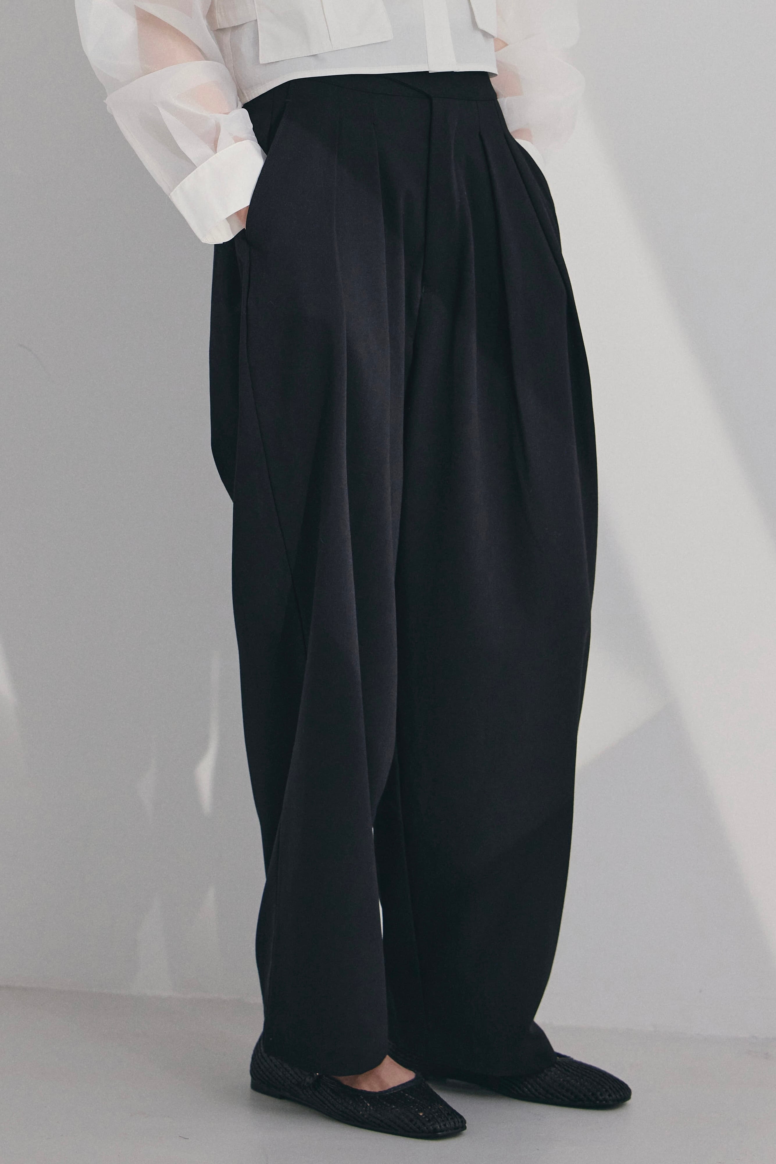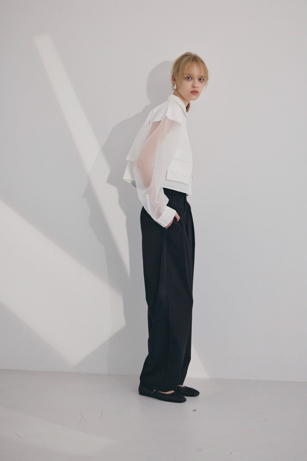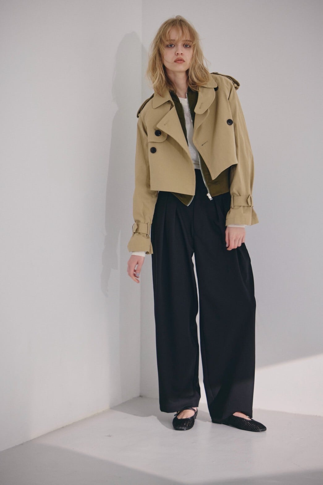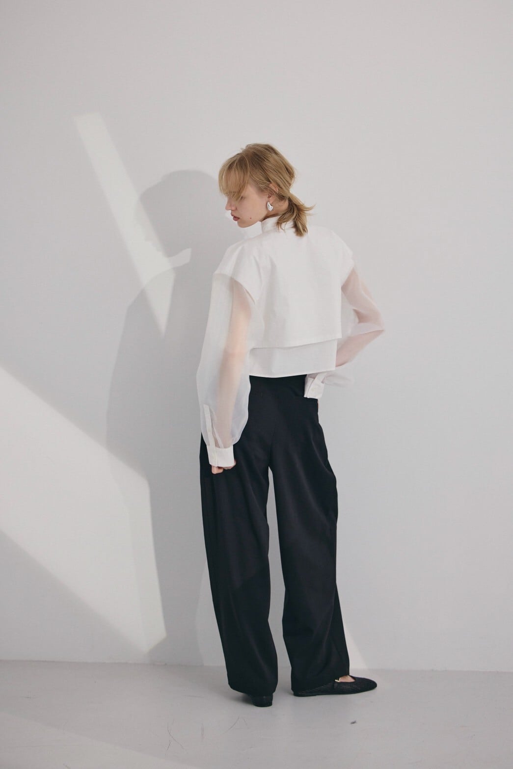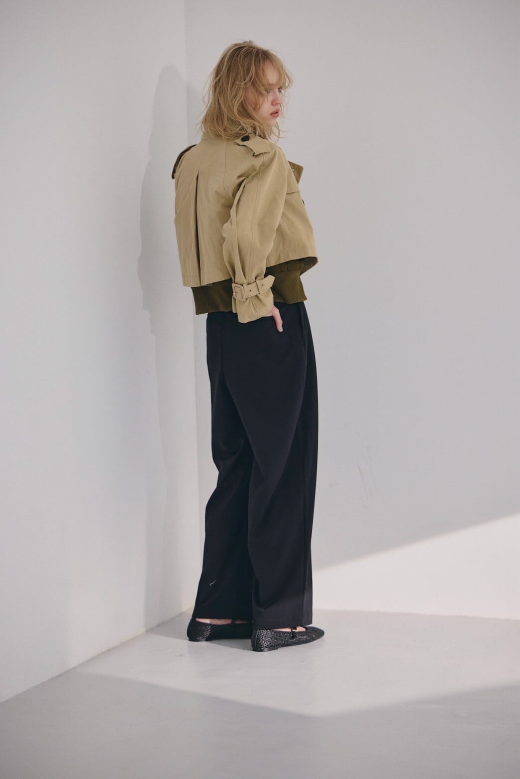 スーチング生地ならではの上品な表情と、ほどよいゆとりのあるシルエットで、