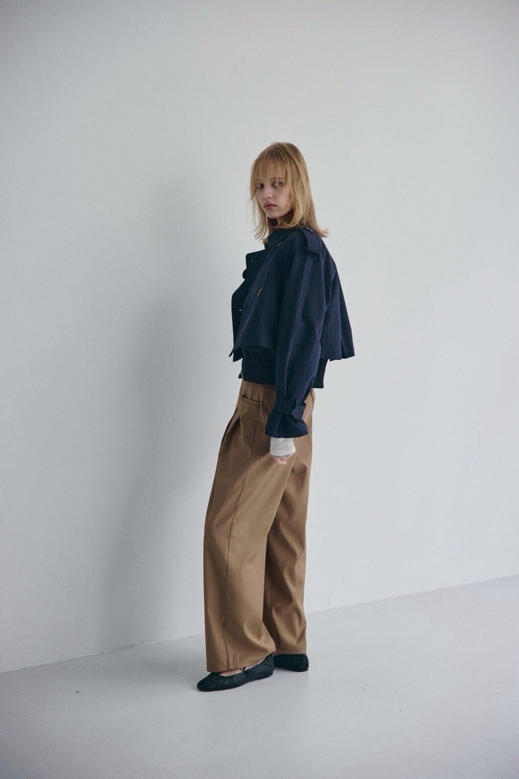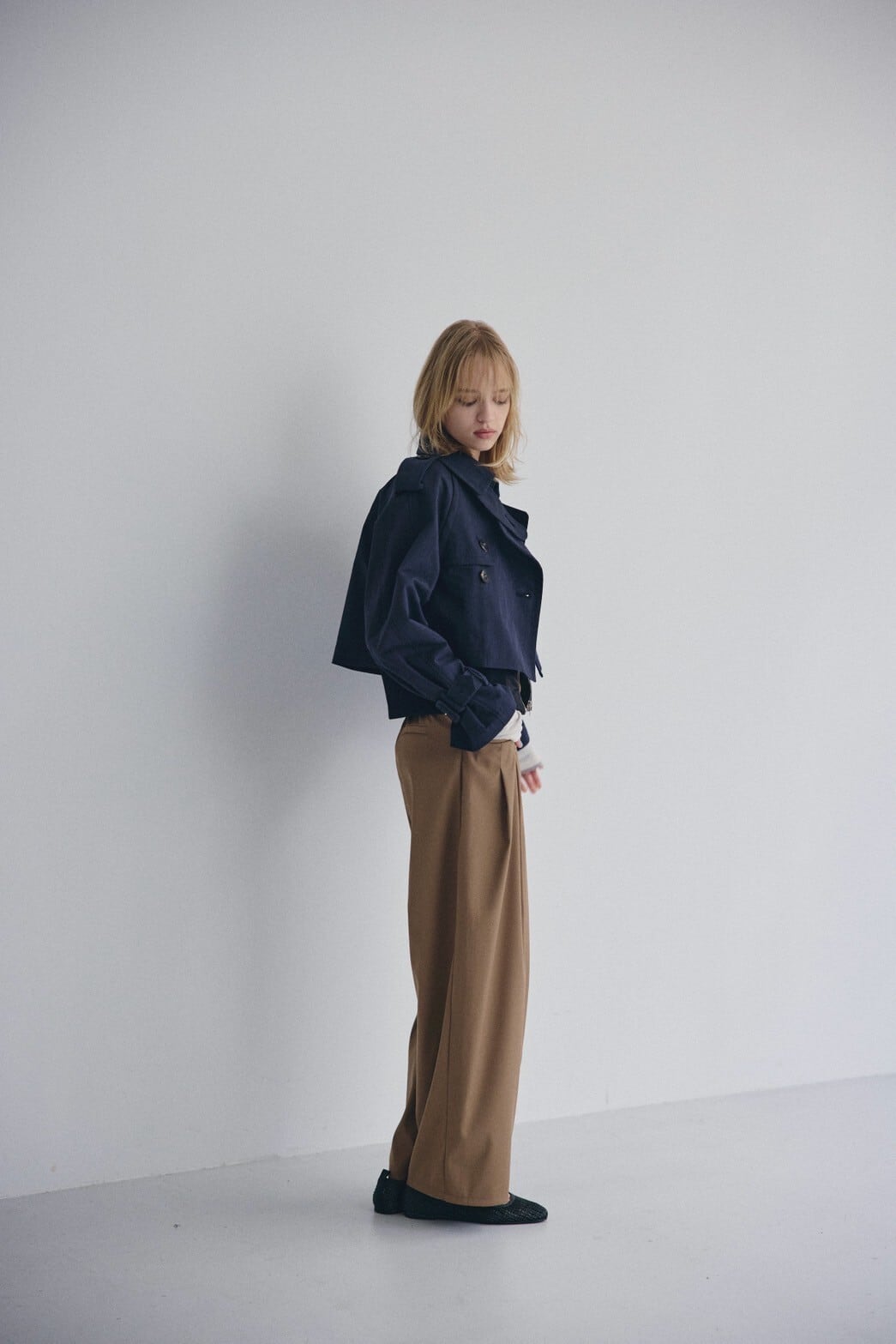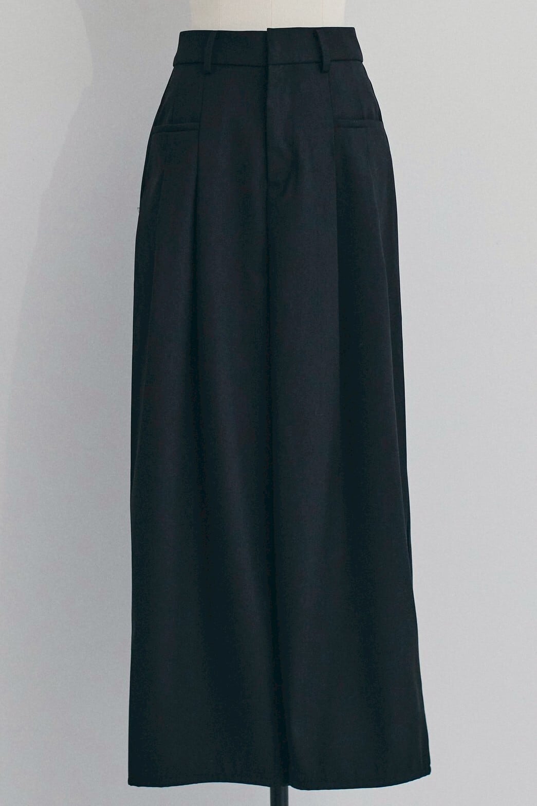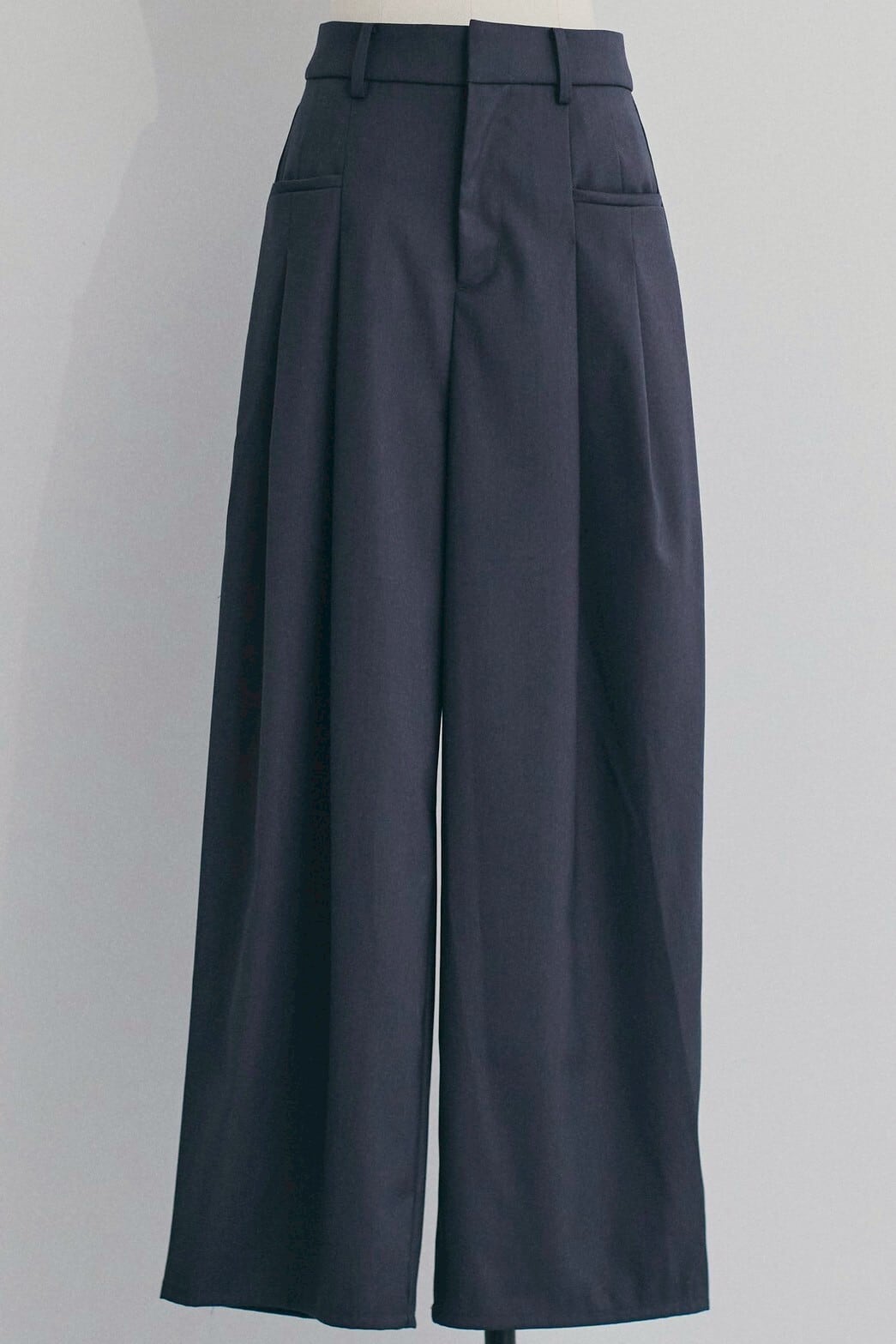深めのタックがつくるやわらかなドレープが印象的なワイドパンツ。