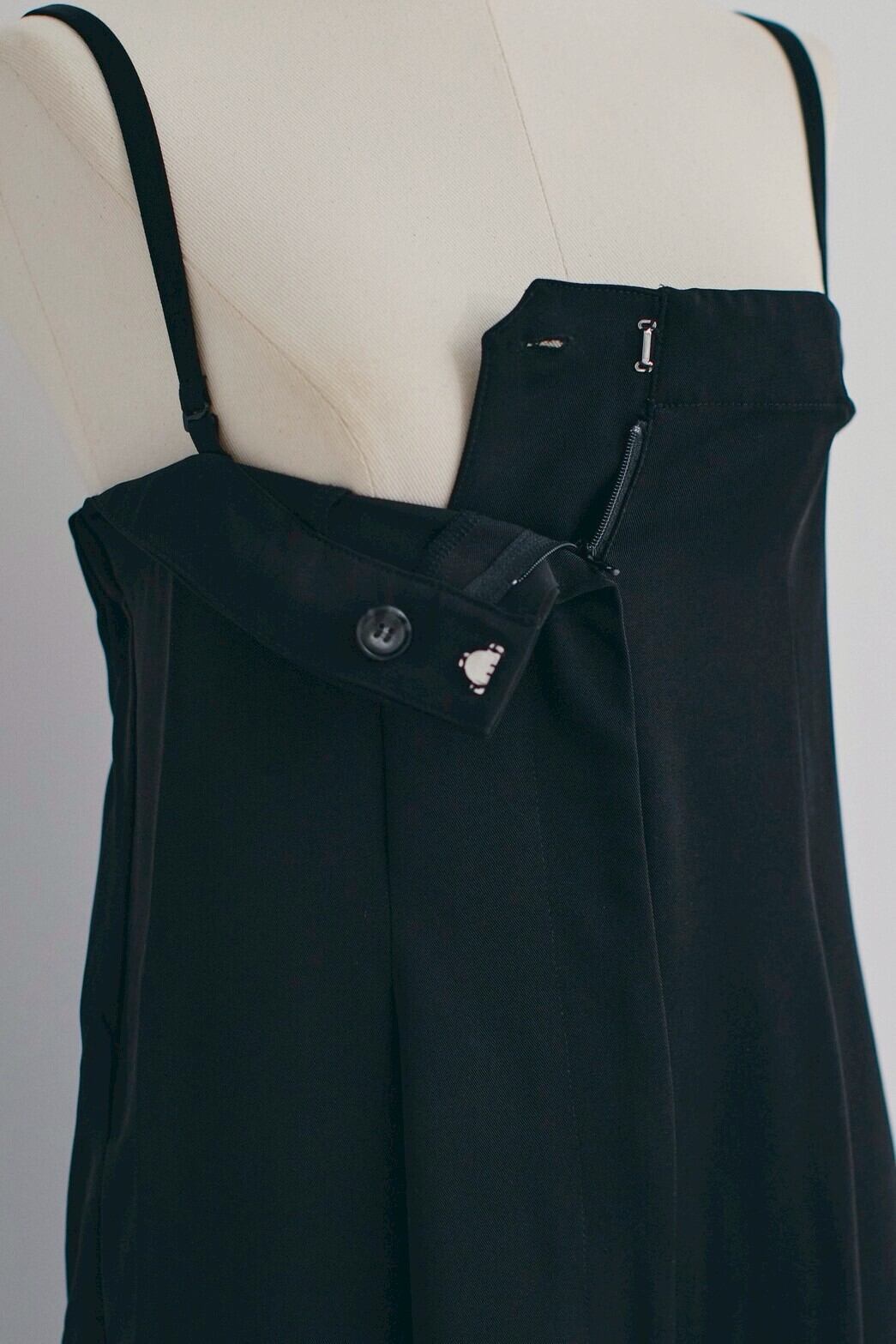 アウターを脱いで肩を出してをチューブトップにもなるサロペットで女性らしさをかもしだせます。また、上からニットを着てしまってスニーカー合わせでもタウンでも充分に存在価値がある1枚になります。