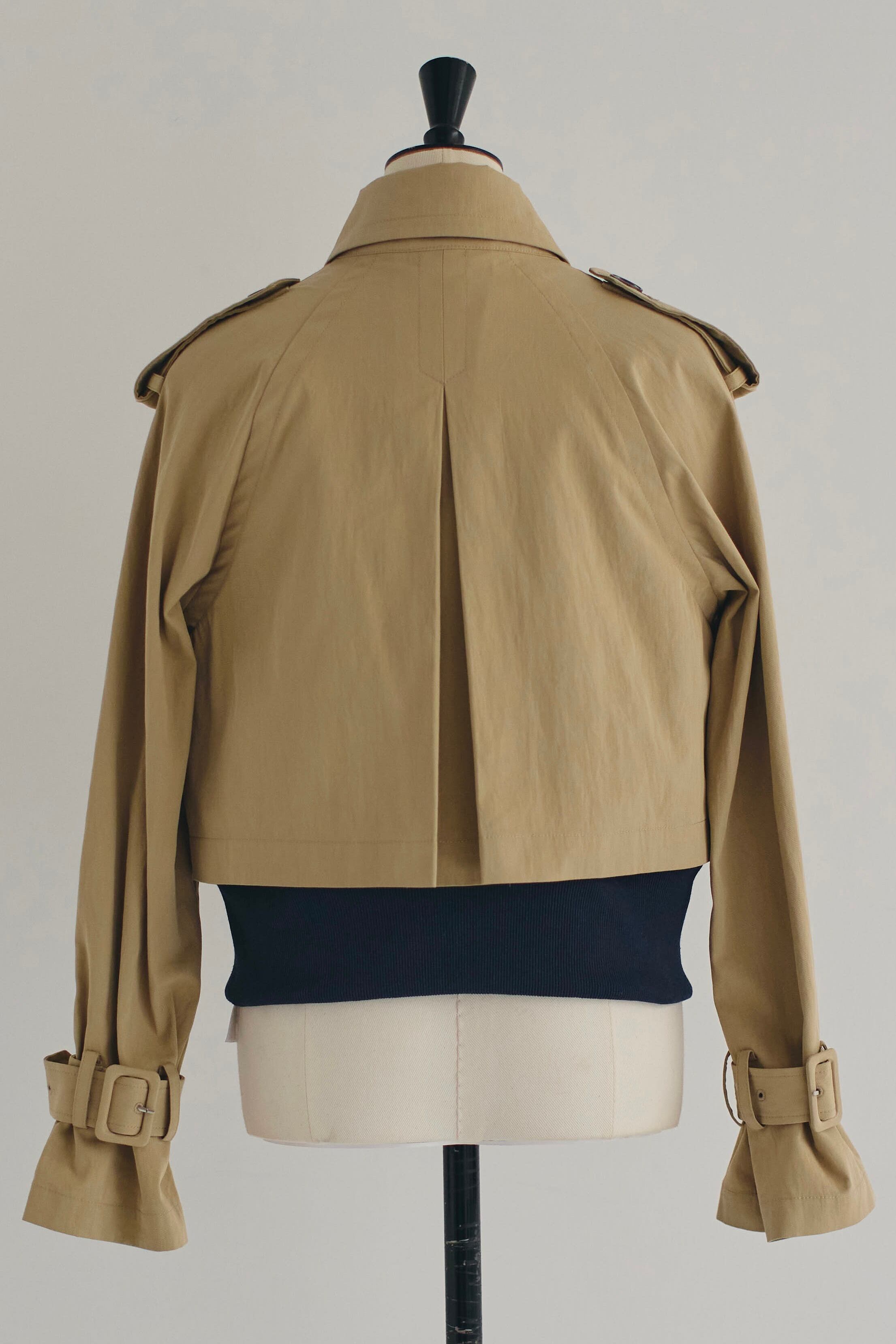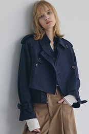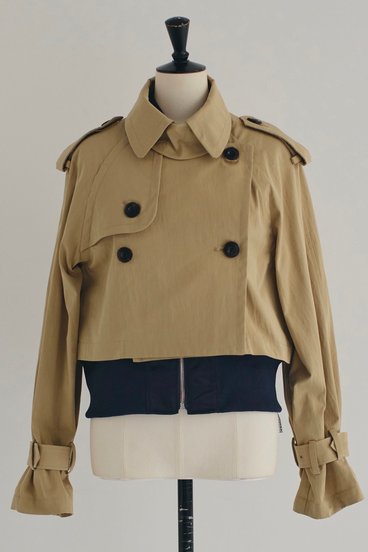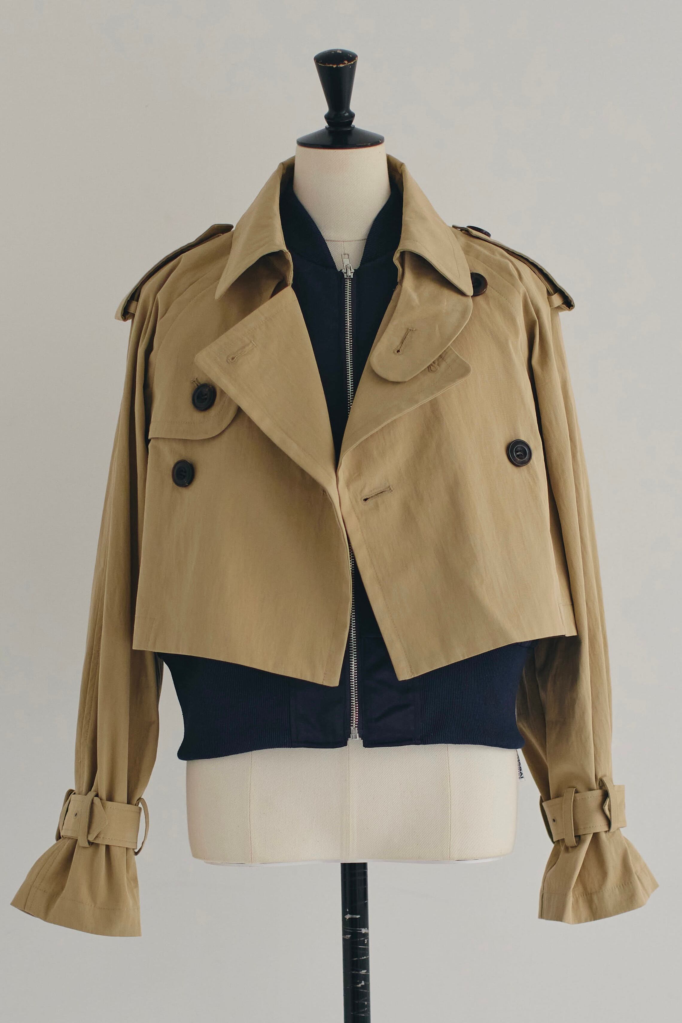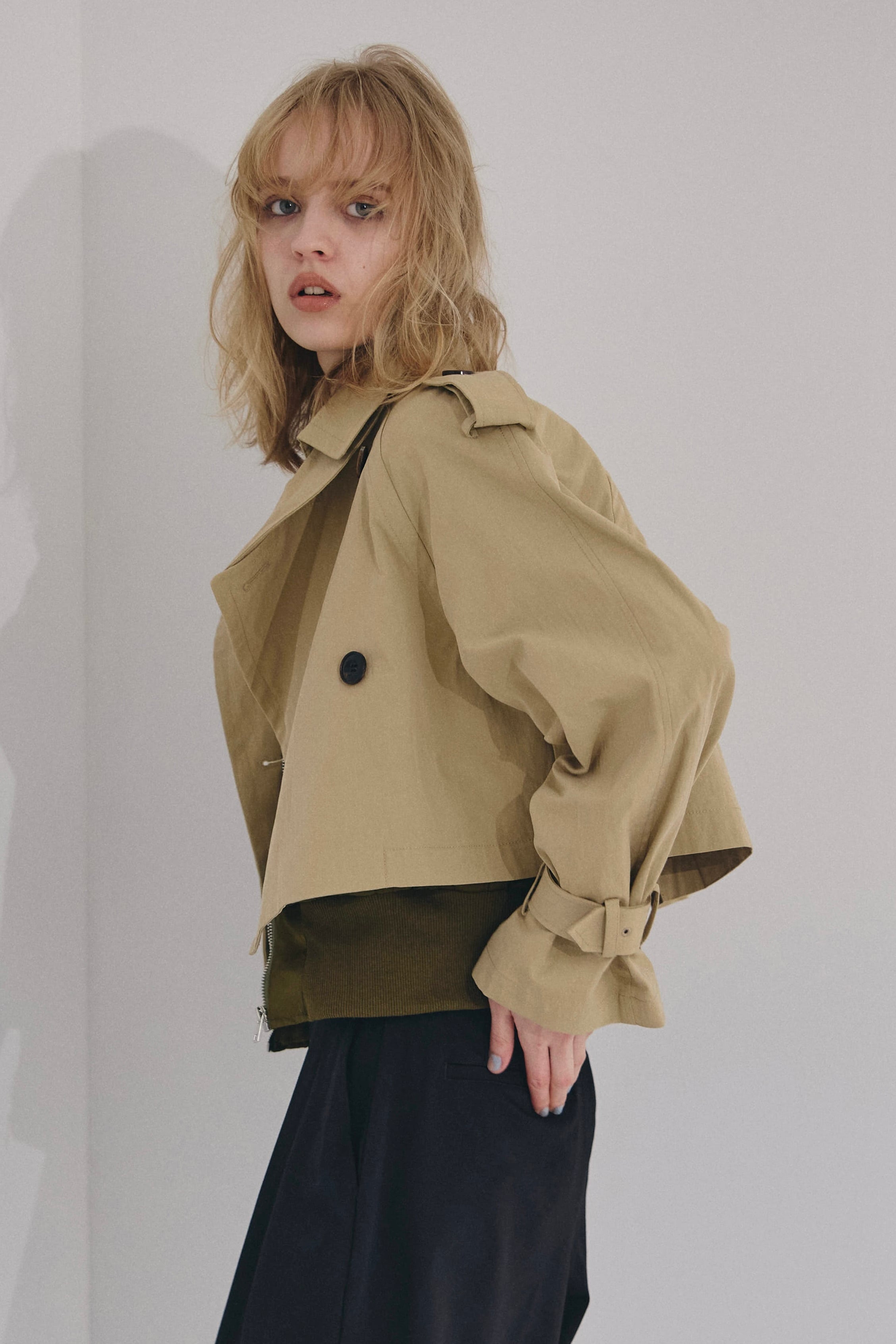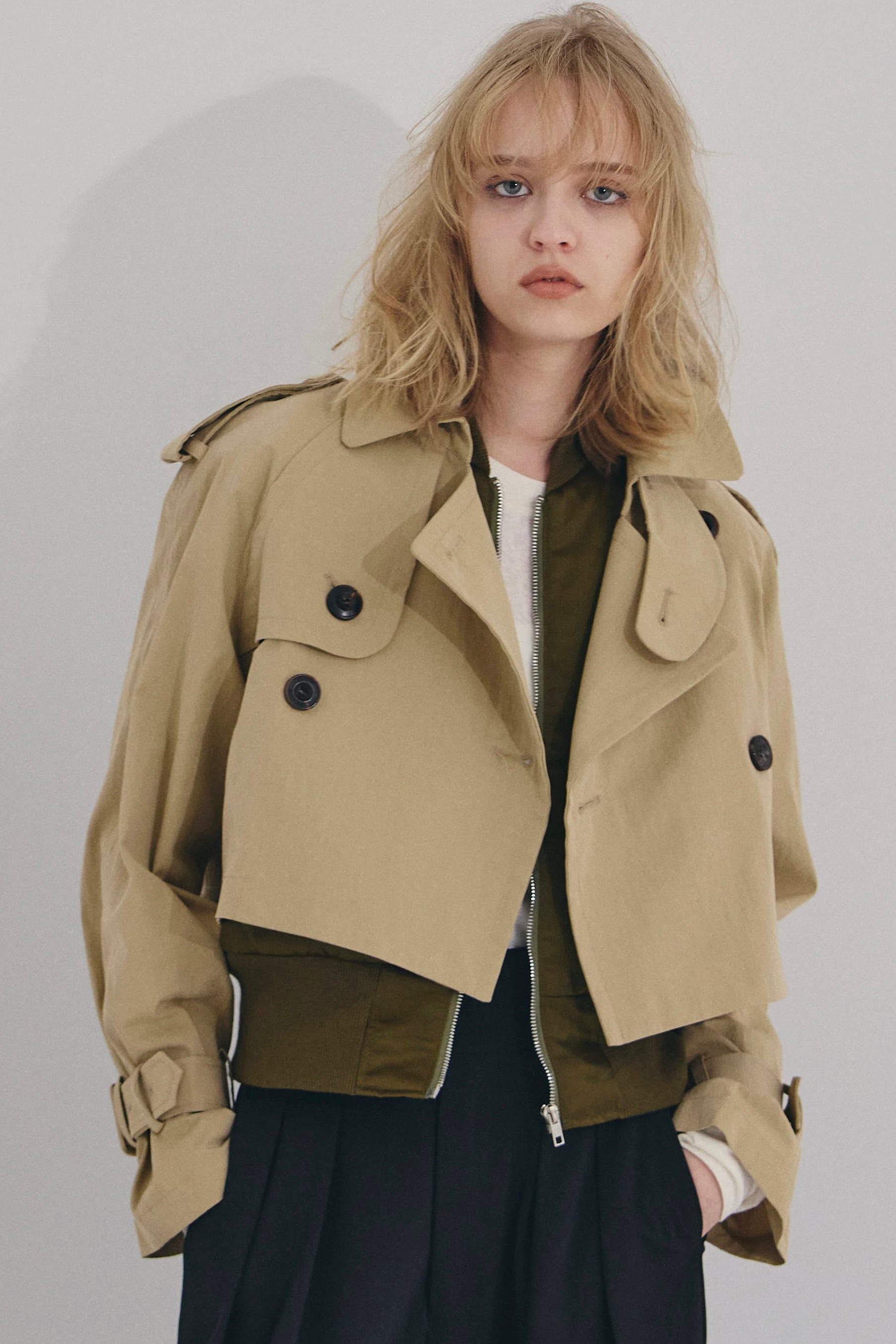 ショート丈のトレンチコートに、ナイロン素材のジレがセットになったアウターシリーズ。