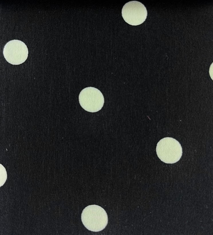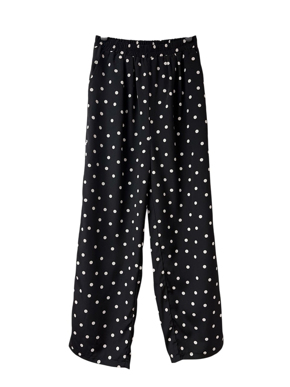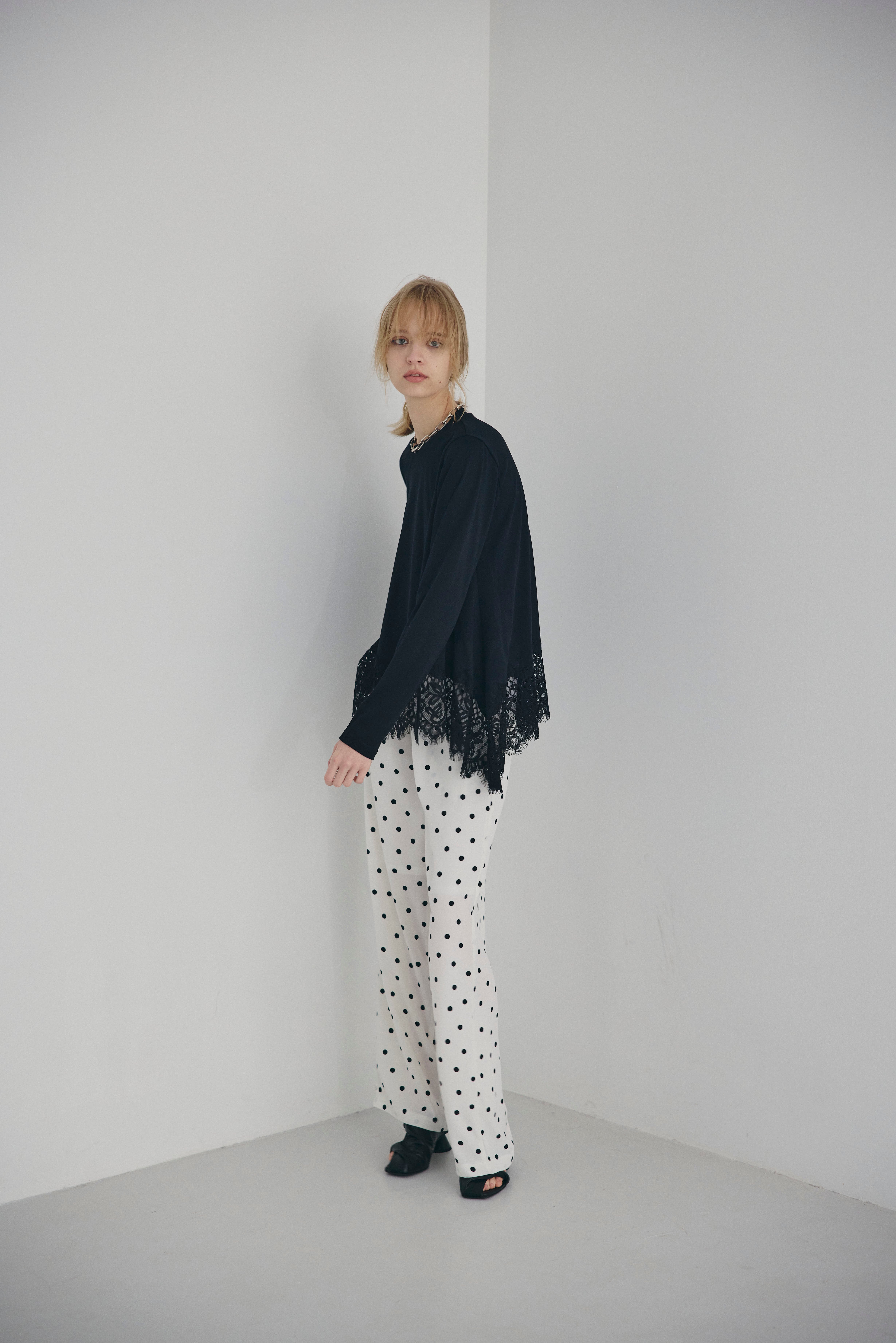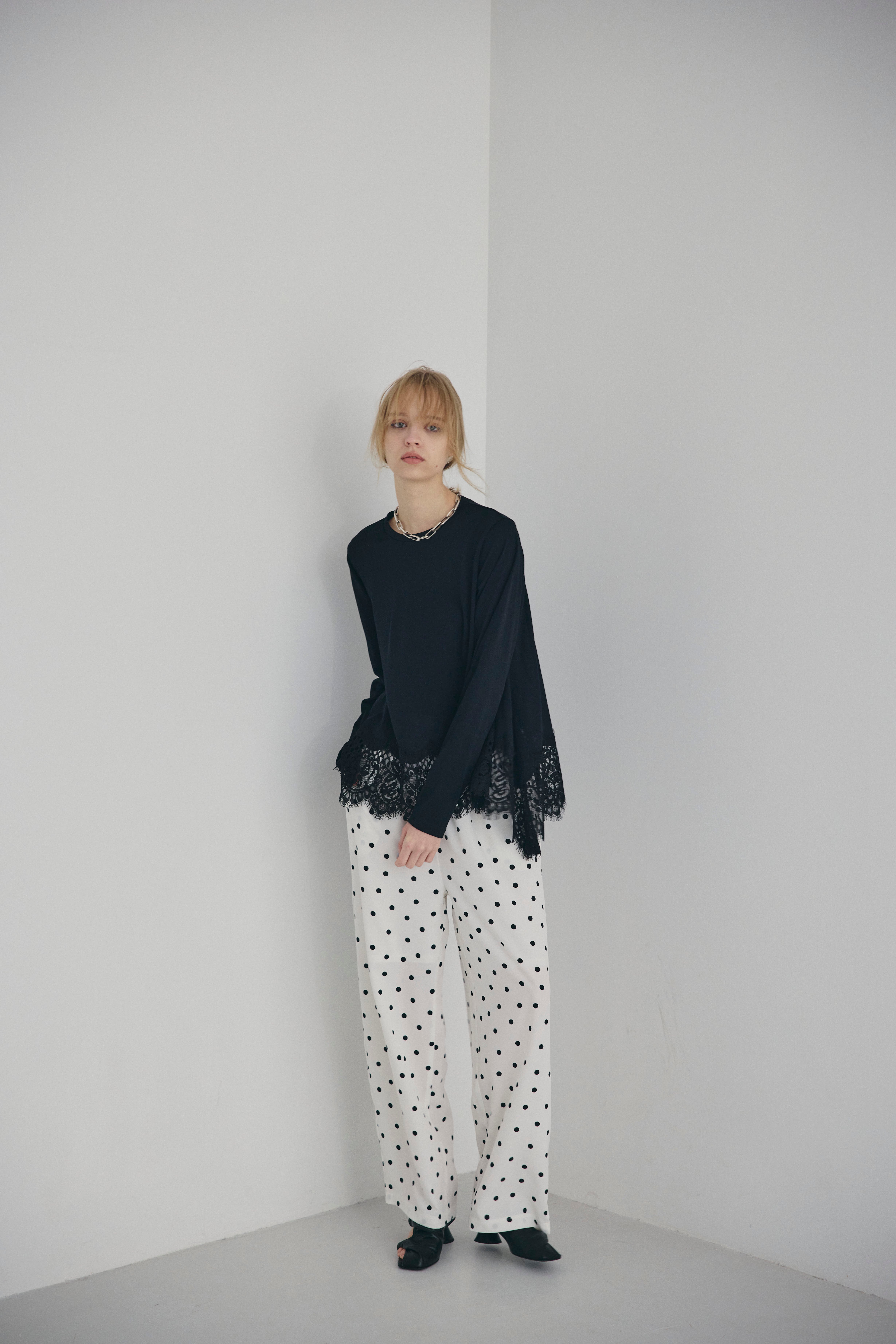 落ち着いた表情の抜染ドットを使用した、イージーパンツ。