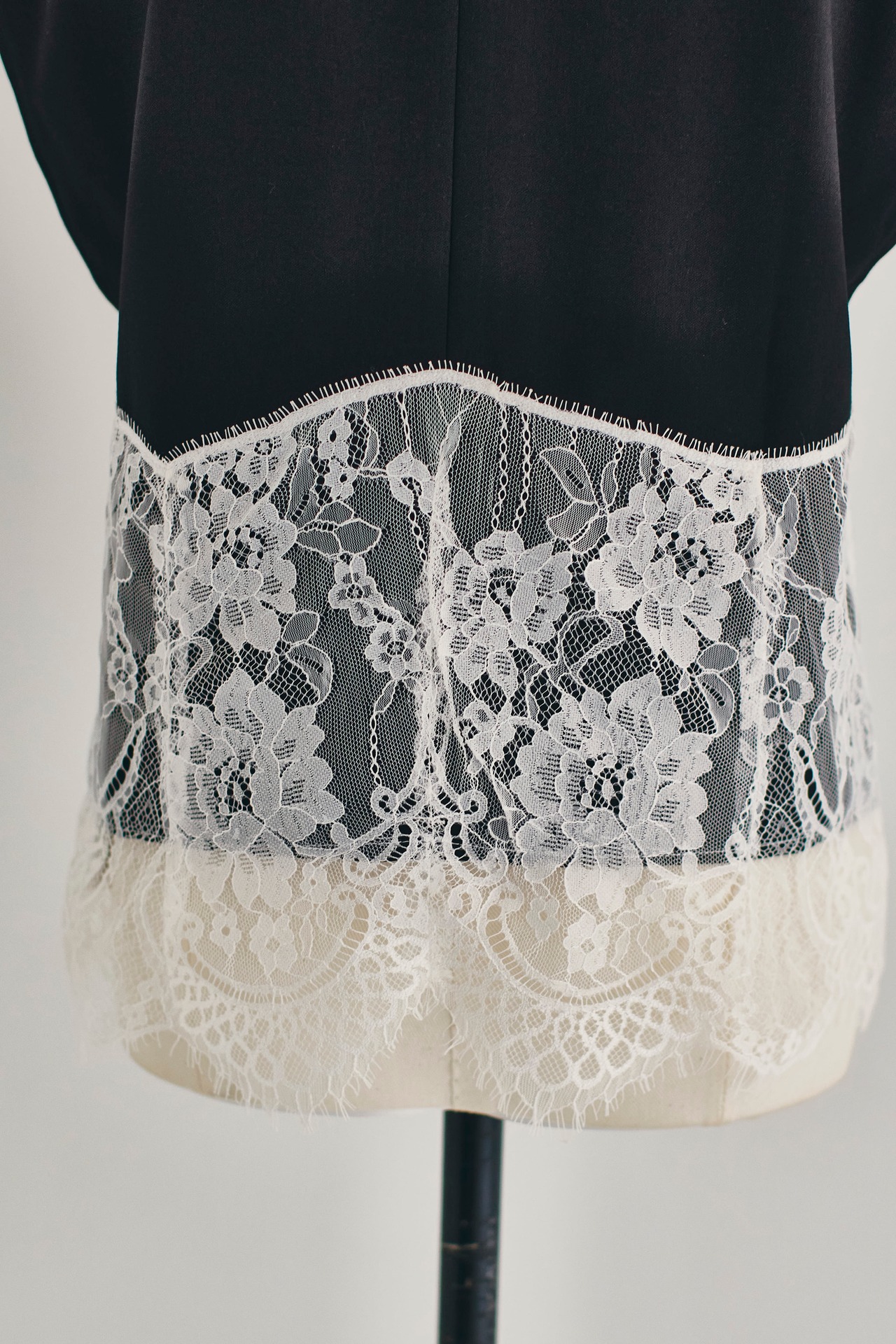 大胆にあしらったレースが今年らしいランジェリー感と女性らしさをプラスしつつ、ウエストまわりを自然にカバーしてくれるのも嬉しいポイント。