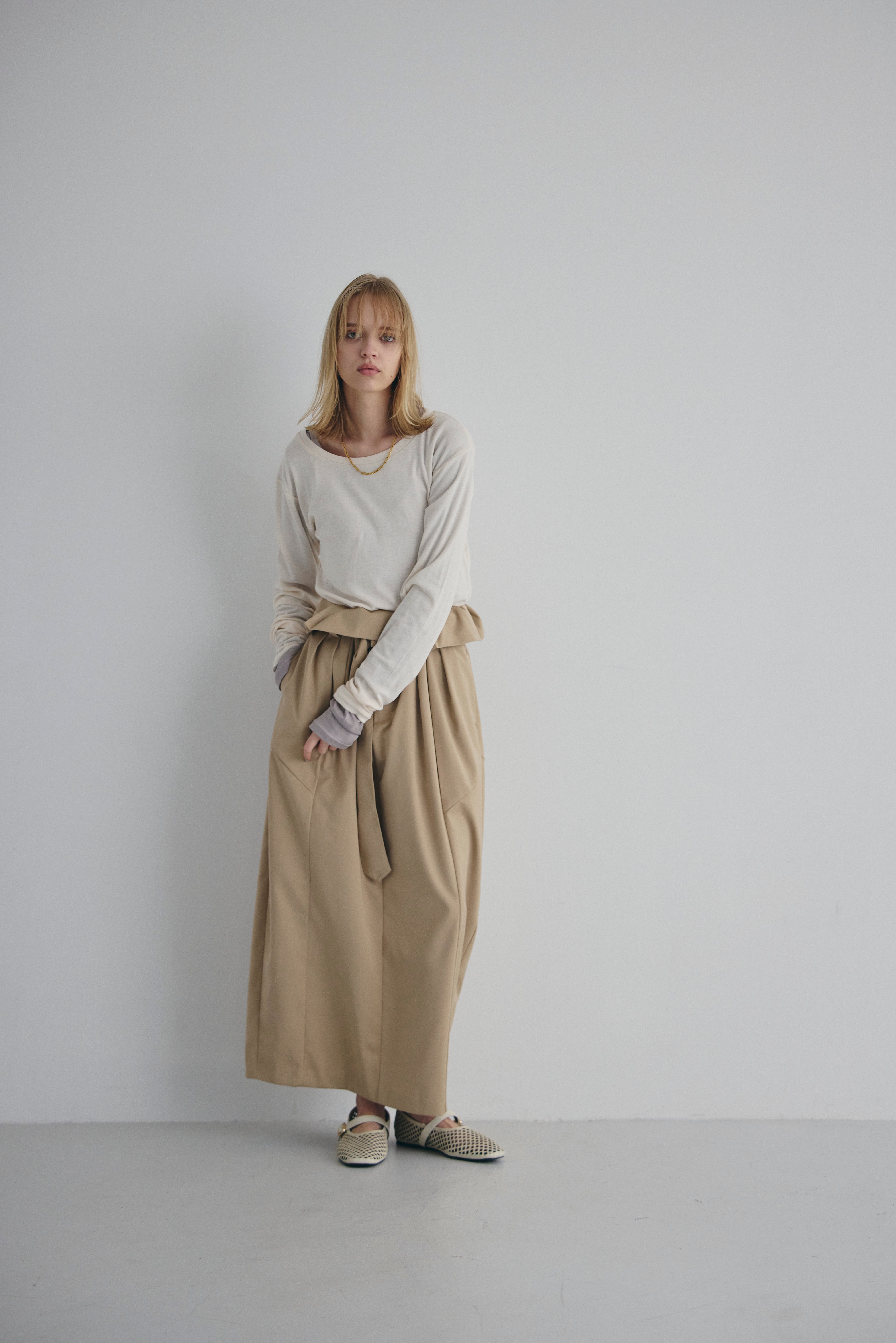 ウエストは折り返してフリル風にも楽しめる2WAYデザインで、さらに太ベルト仕様なのでウエストの調整もしやすく、自分にフィットした穿き心地に整えられます。
