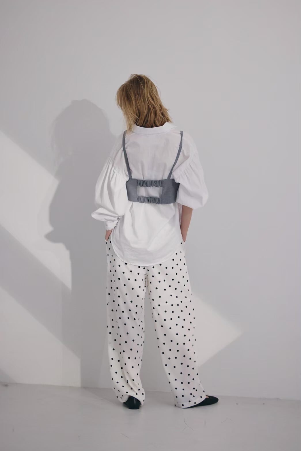 甘さのある袖フォルムに、コンパクトなビスチェを重ねることでメリハリが生まれ、