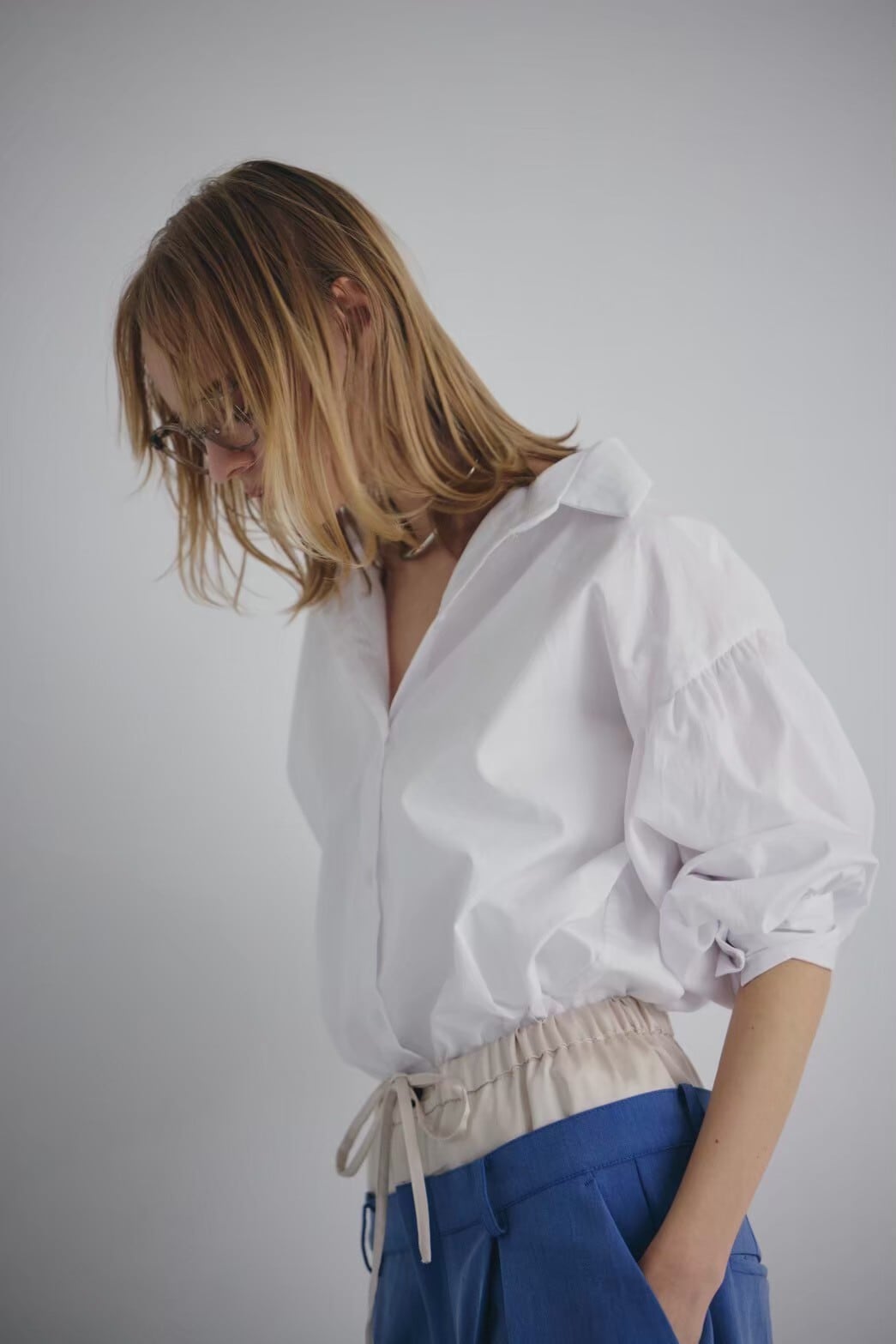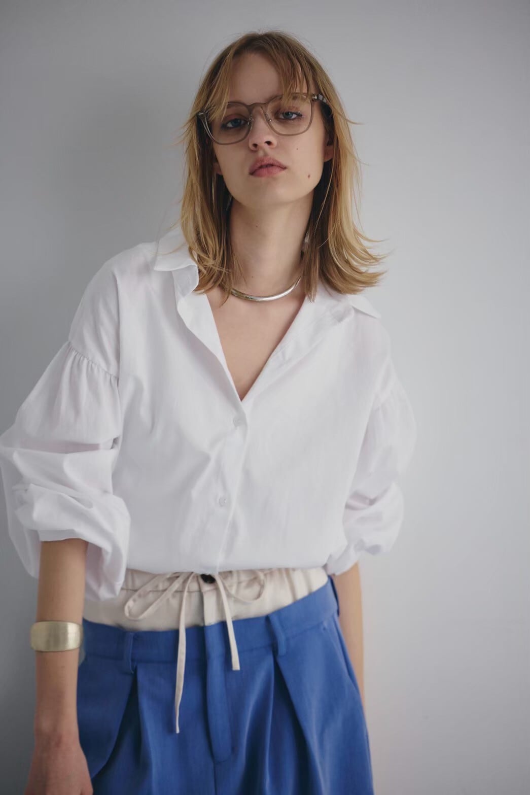 程よいハリ感のある綿100%素材で仕立てた、袖ボリュームシャツ。