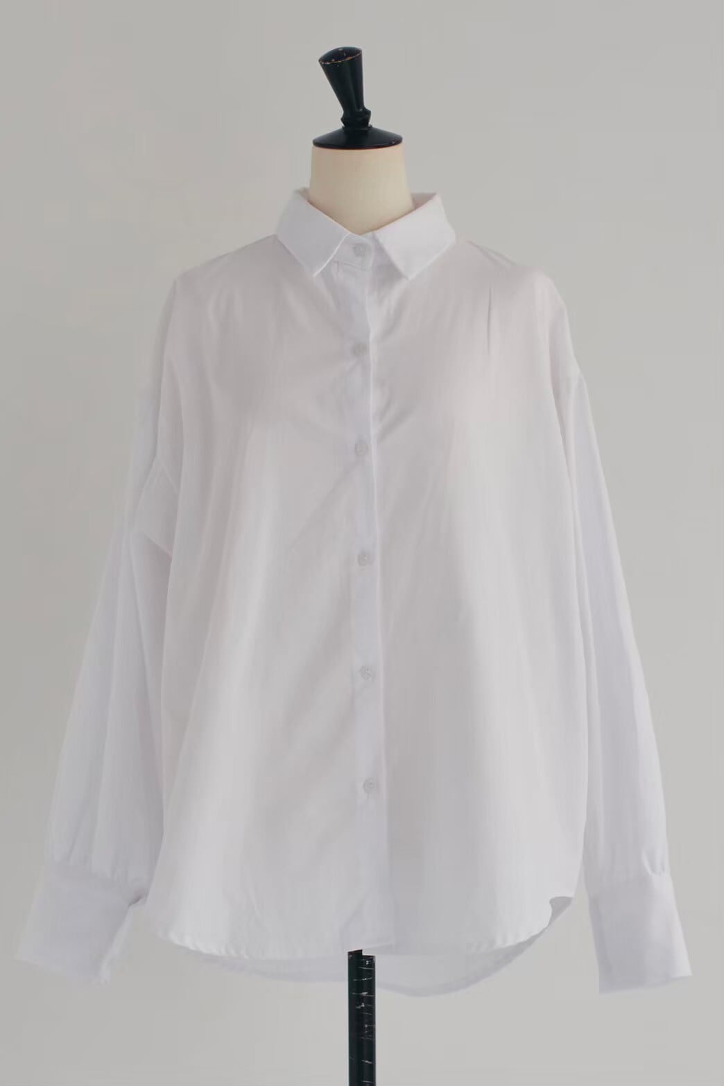 たっぷりと分量をとったスリーブが、シンプルな白にさりげない立体感を生み出します。